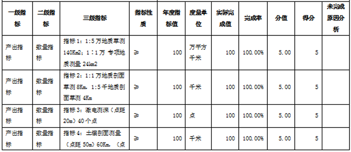 地质调查评价项目绩效自评表: